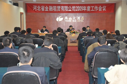 2009122,公司在燕山大酒店召開2009年度工作會議。會上張董事作了題為《再接再厲再創輝煌為實現“兩個最大”目標而努力》的報告。張董事長總結了2008年的工作,分析了當前的經濟形勢和租賃市場的競爭格局,明確了今后一個時期公司落實發展戰略的指導思想和主要任務。
