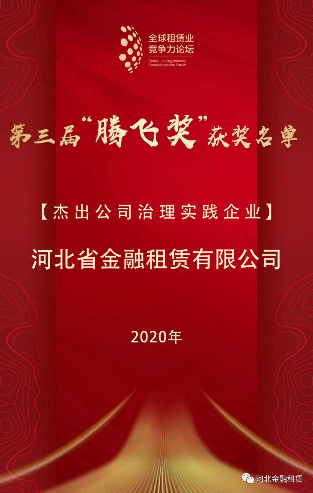 全球租賃業(yè)競爭力論壇峰會11月4日至5日在天津舉行,近千位國內(nèi)外融資租賃行業(yè)嘉賓齊聚一堂,匯智論道,“聚焦雙循環(huán),謀新十四五”。本次峰會同時頒發(fā)第三屆中國融資租賃“騰飛獎”,河北省金融租賃有限公司榮獲中國融資租賃“杰出公司治理實踐企業(yè)”榮譽。