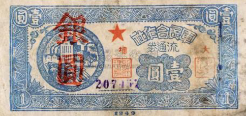 在抗戰勝利結束時,山東解放區已有極大發展,有12.5萬平方公里的面積,占山東總面積的92%,擁有2400萬人口,占山東總人口的90%。1948年10月,山東的北海銀行幣與華北的冀南銀行幣、晉察冀邊區幣固定比價互相流通,1948年11月16日起,北海銀行幣與華中銀行幣等價流通。這一時期的北海銀行幣均不加蓋地名,便于山東以外的地區流通。1948年12月1日,華北銀行、北海銀行、西北農民銀行合并,在石家莊成立中國人民銀行,但因工作的需要,北海銀行繼續營業,1949年1月底開始回收北海銀行幣,同年11月1日改稱中國人民銀行山東分行,至此,北海銀行完成了它的歷史使命宣告結束。