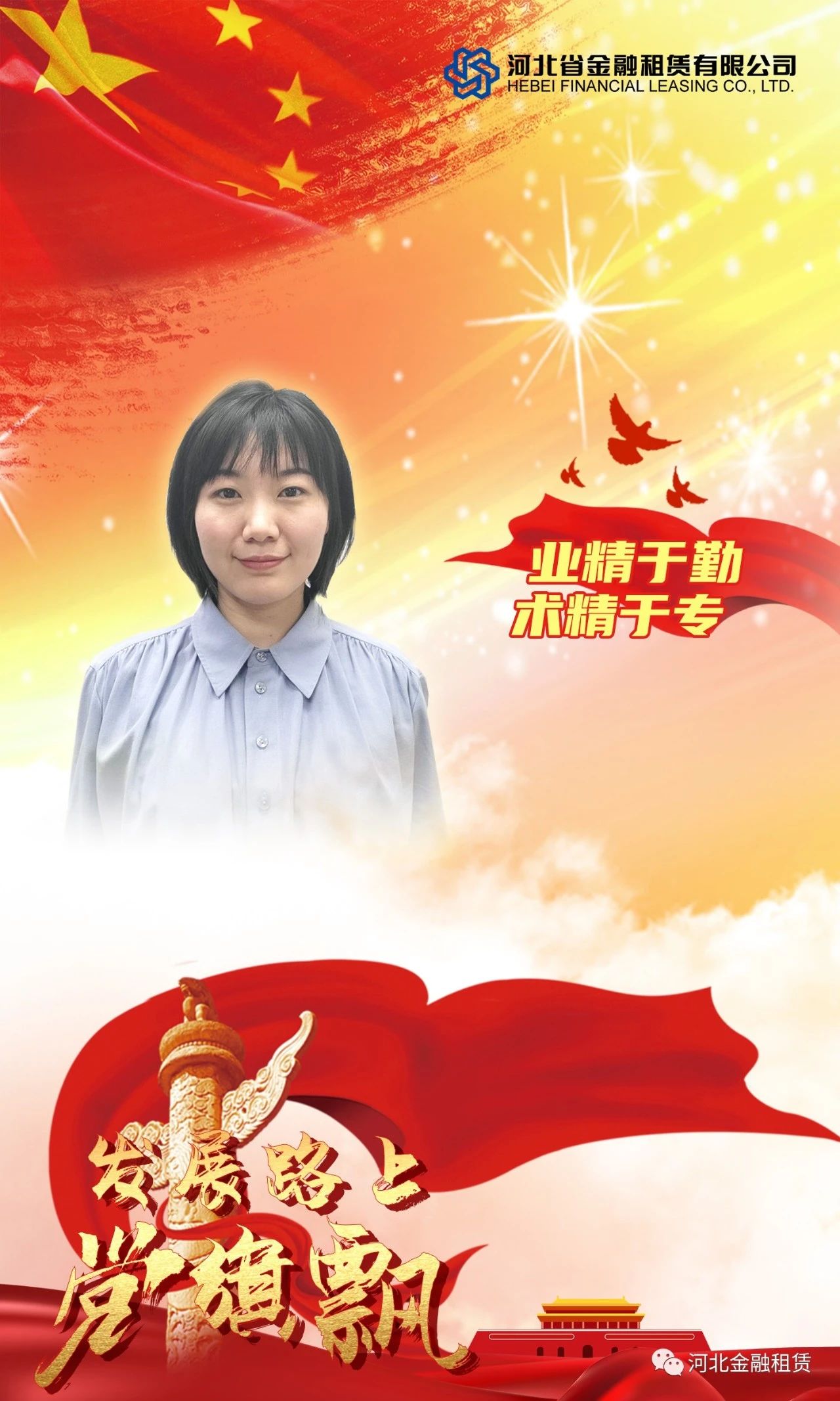 她是公司第一黨支部的支部書記,黨課學(xué)習(xí)、談心談話、小組分享、主題黨日活動等豐富多彩的活動全都一手組織,入黨12年,堅持行動在前,帶動在前;她是公司融資團隊的業(yè)務(wù)骨干,在本職崗位上不斷探索,敢于擔(dān)當(dāng),踐行一名黨員的“知行合一”。