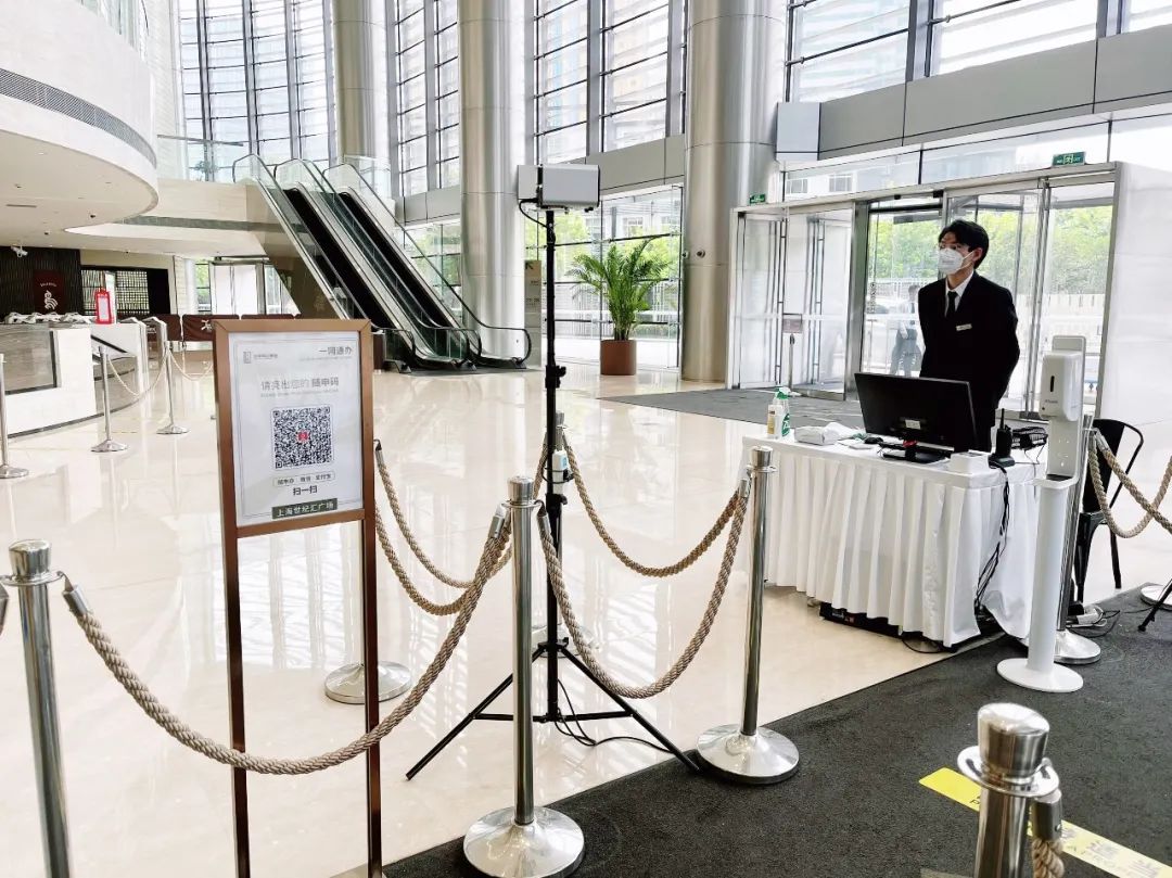 工區(qū)大樓布設(shè)健康核驗(yàn)一體機(jī)“數(shù)字哨兵”,各人員有序掃碼核驗(yàn)入場。