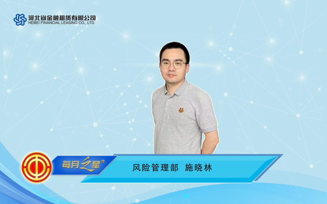 他全身心參與中小租賃業務體系建設,積極推動用大數據和金融科技打造中小租賃業務新產品,保障中小業務平穩、快速發展,他是風險管理部副總經理施曉林。